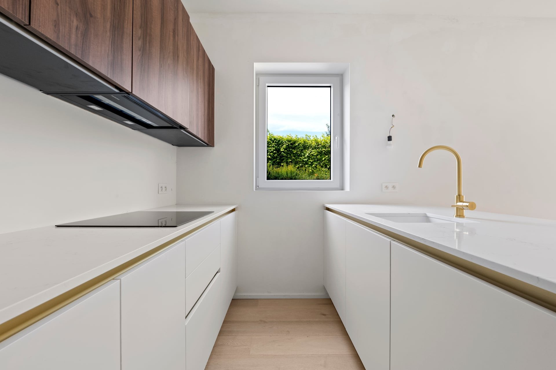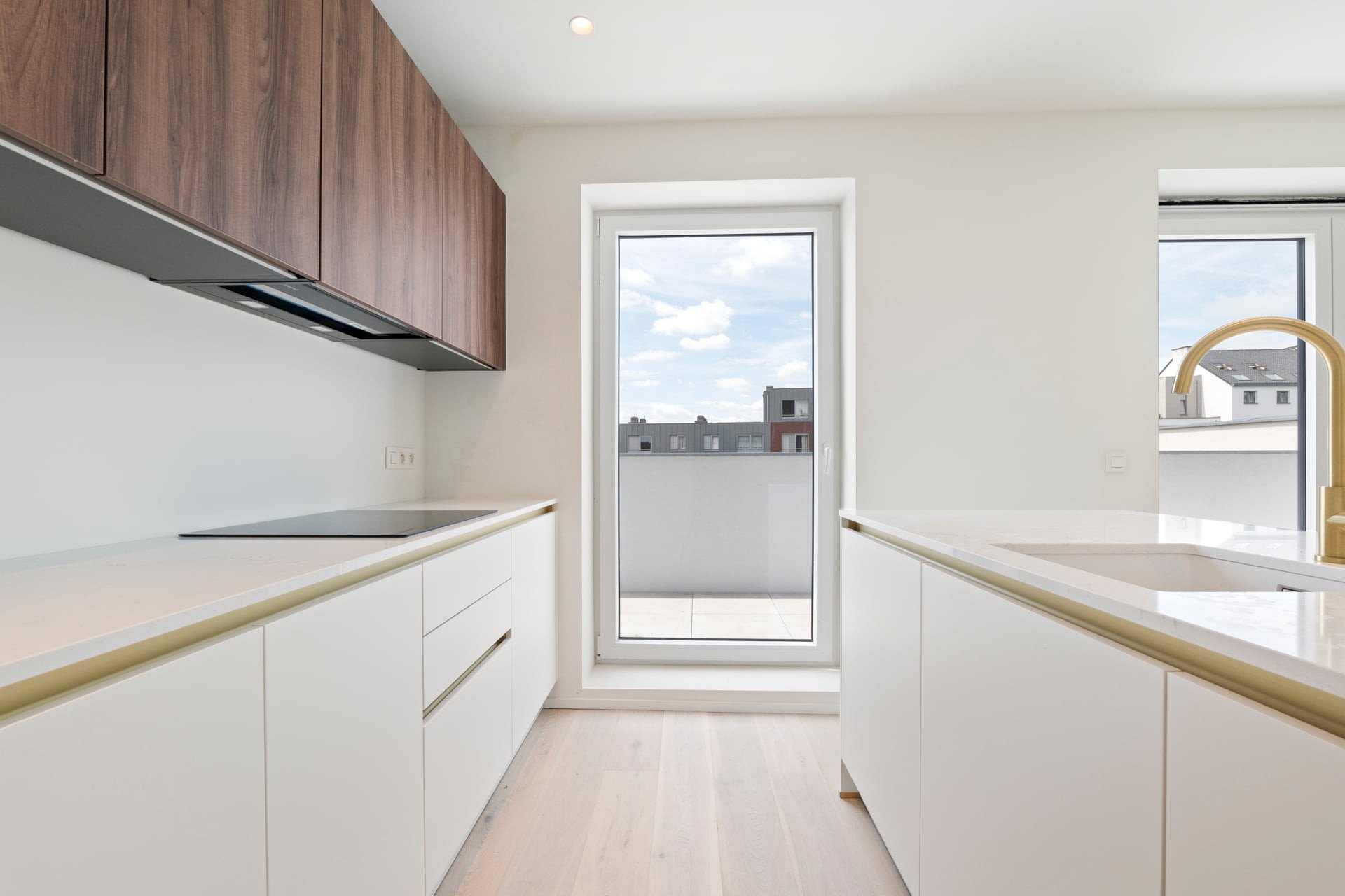 Elke woning is instapklaar en ademt klasse dankzij het voleiken parket het verfijnde deurbeslag het stijlvolle kraanwerk en de modern afgewerkte keuken en badkamer. Het overvloedige daglicht in combinatie met de inbouwspots en armaturen zorgt voor een warme uitnodigende sfeer.